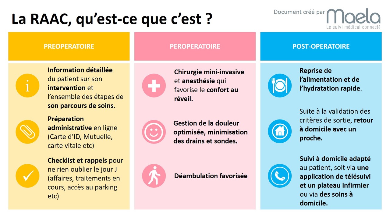 Ainsi, cette organisation novatrice, doublée des avantages de la RRAC, va vous permettre de bénéficier ultérieurement de la meilleure prise en charge possible pour que votre intervention chirurgicale soit une réussite rapide et complète et que votre satisfaction soit la plus totale possible.